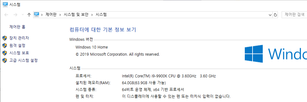 1) 파일 탐색기 > "내 PC" 우클릭 > "속성"
